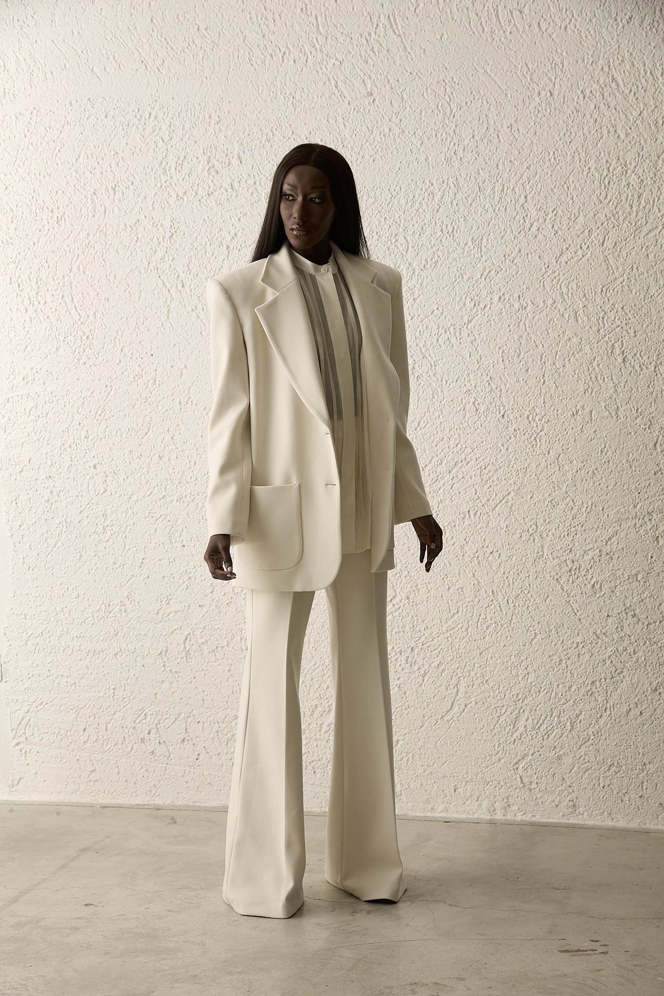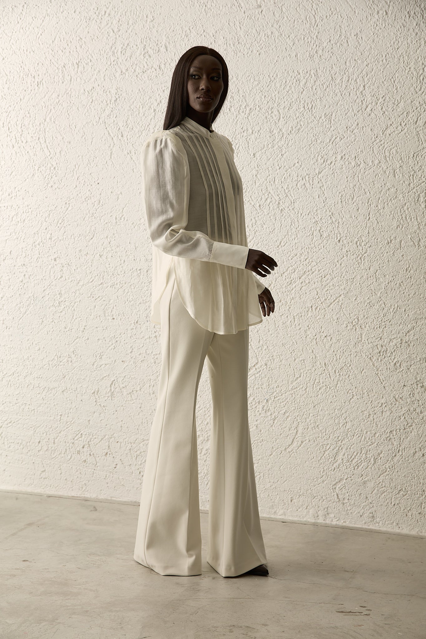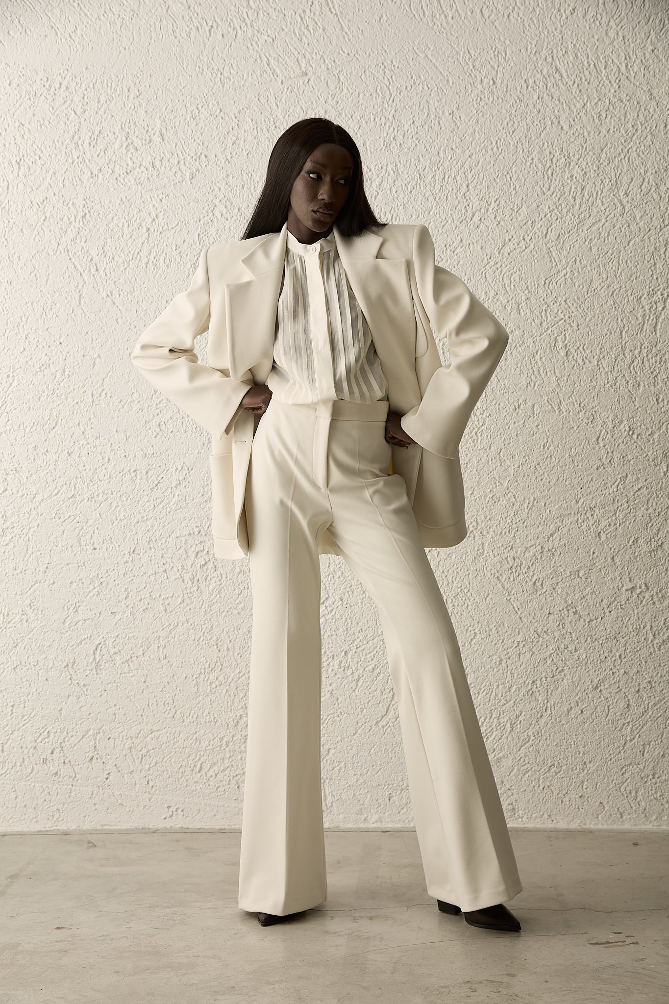 Pantalone a vita alta, caratterizzato da una linea pulita e dal taglio leggermente svasato al fondo che slancia la figura. Elegante e versatile, unisce comfort e raffinatezza in un capo essenziale del guardaroba contemporaneo. Perfetto da abbinare al suo Ash Blazer